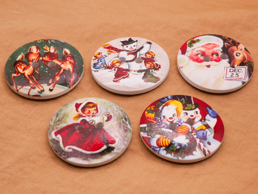 Christmas Santa Reindeer Santa Snowman Wood Set of Five Buttons 30mmRegular price $8.00 USDRegular priceUnit price / per-