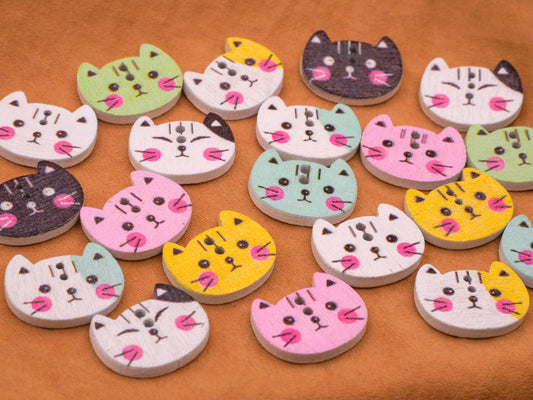 Kitty Cat Face Wood Assorted Set of Twenty Buttons 13x16mmRegular price $4.00 USDRegular priceUnit price / per-