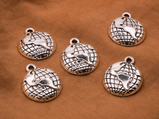 Globe Grid Earth Silver Metal Charm Embellishment 16mmRegular price $1.00 USDRegular priceUnit price / per-