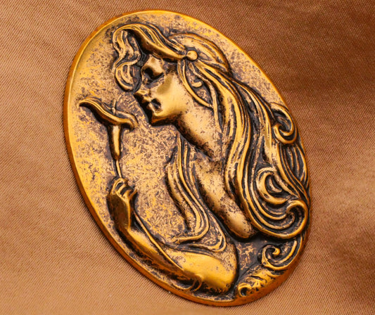 Art Nouveau Lady Woman Calla Lily Flower Large Brass Metal Button 34x45mmRegular price $6.50 USDRegular priceUnit price / per-