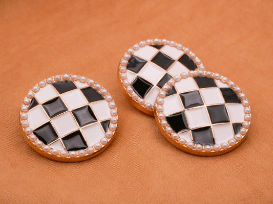 Checkerboard Pearl Edge Enamel Metal Button 23mmRegular price $2.50 USDRegular priceUnit price / per-