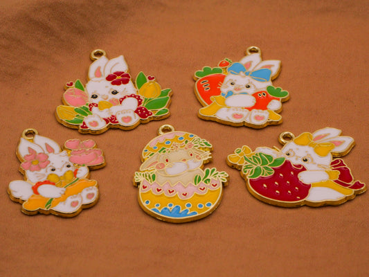 Bunny Rabbit Easter Enamel Metal Set of Five Charms Embellishments 22-32mmRegular price $5.00 USDRegular priceUnit price / per-