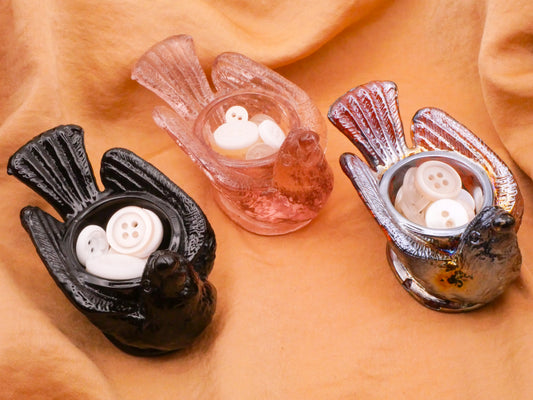 Bird Salt Cellar Dish Container White Plastic Buttons Various 1.75x3inRegular price $11.00 USDRegular priceUnit price / per-