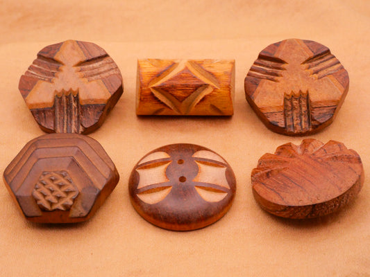 Carved Wood Medium Tone Vintage Button Various 16-29mm