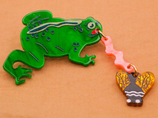 Frog Catching Fly Moveable Large Acrylic Plastic Button 43x59mm