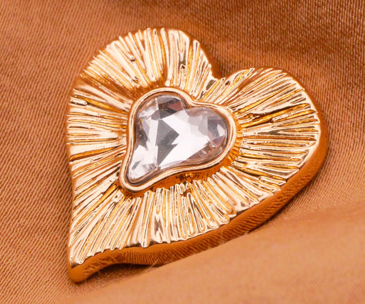 Heart Rhinestone Gold Textured Metal Button 24x25mm