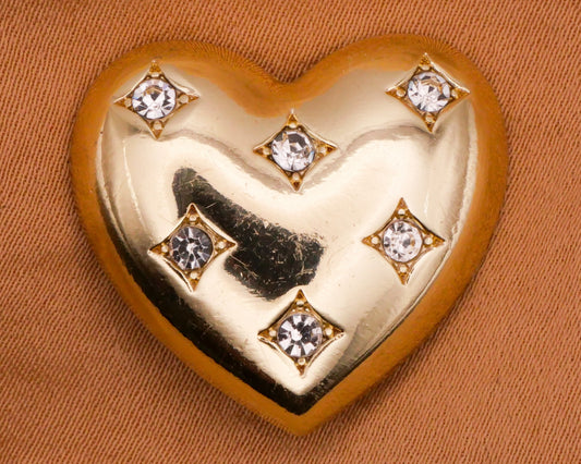 Heart Rhinestone Shiny Gold Metal Button 23x25mm