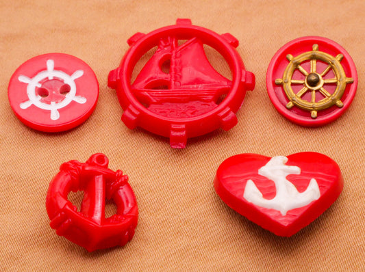 Nautical Red Vintage Plastic Anchor Wheel Sail Boat Heart Button Various 15-25mm
