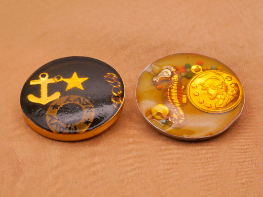 Nautical Anchor Sea Horse Junque Resin Metal Button Various 29-30mm