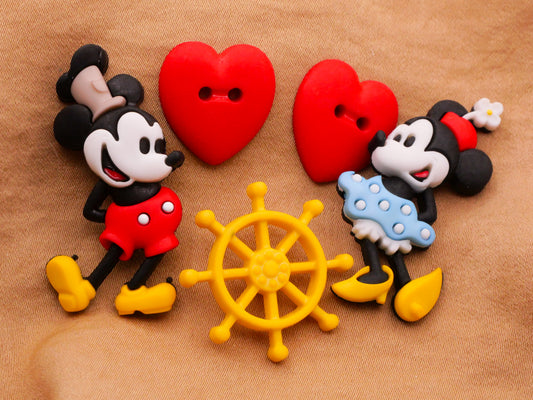 Steam Boat Willie Mickey Minnie Mouse Disney Plastic Set of Five Buttons 17-38mm