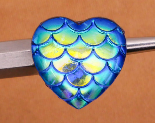 Heart Mermaid Scales Design Blue Green Iridescent Plastic Set of Five Buttons 12mm