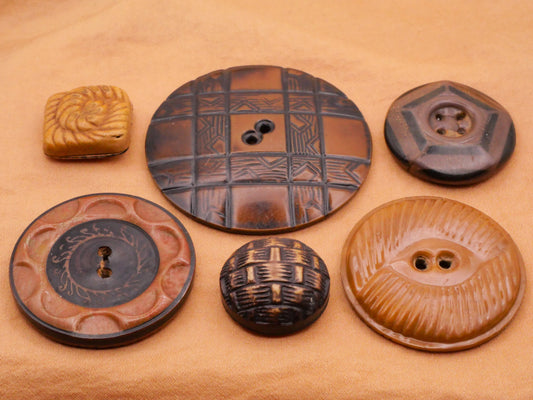 Western Inspired Brown Tan Celluloid Early Plastic Button Various 20-50mm