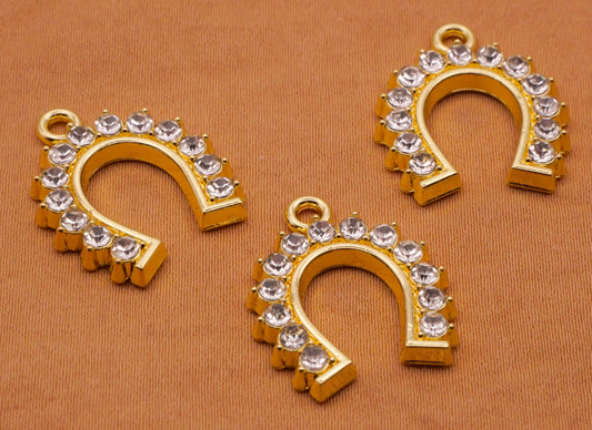 Horseshoe Rhinestone Shine Gold Set of Three Charms Embellishments 18x21mm