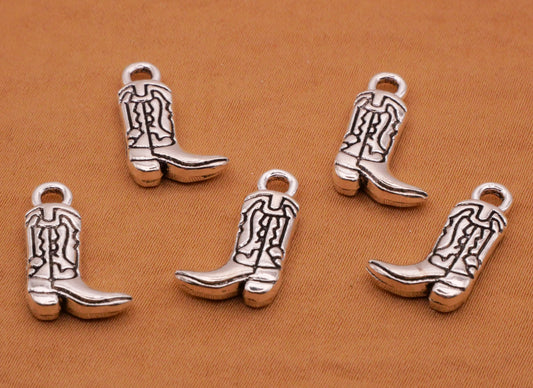 Cowboy Boot Shoe Silver Metal Set of Five Charms Embellishments 11x18mm