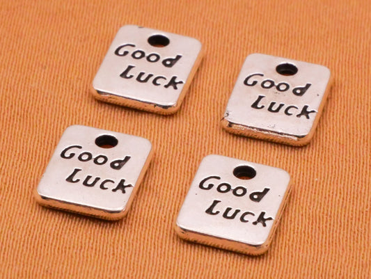 Good Luck Verbal Silver Metal Set of Four Charms Embellishments 7x9mm