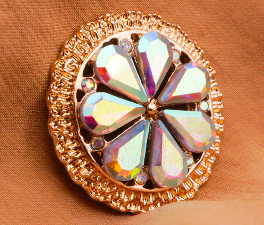 Flower Iridescent Glass Rhinestone Gold Metal Button 24mm