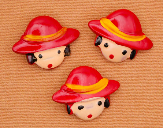 Red Hat Yellow Ribbon Trim Lady Girl Hand-Painted Enamel Metal JHB Button 15x19mm