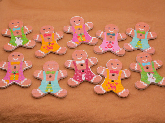Gingerbread Men Colorful Outfits Wood Set of Ten Buttons 24x30