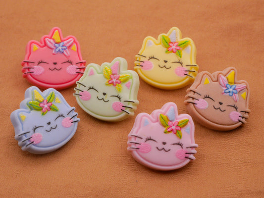 Cat Kitty Unicorn Flowers Plastic Assorted Set of Four Buttons 21mm
