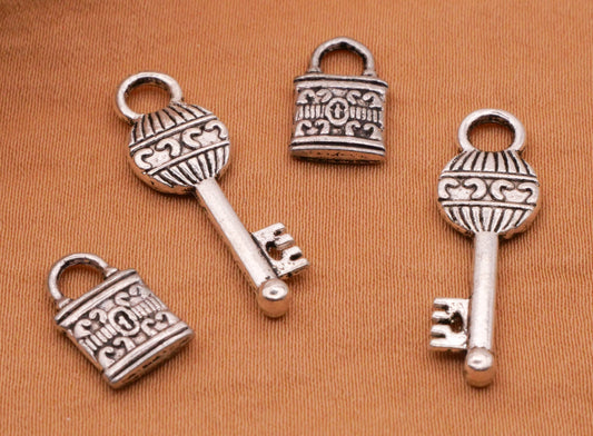 Key Lock Hot-Air Balloon Silver Metal Set of Four Charms Embellishments 8-26mm