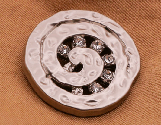 Swirl Spiral Whirlpool Hammered Silver Metal Rhinestone Button 23mm