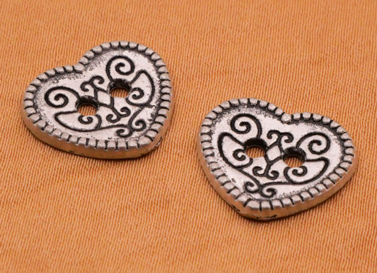 Heart Filigree Sew-Thru Silver Metal Pair of Buttons 14x15mm