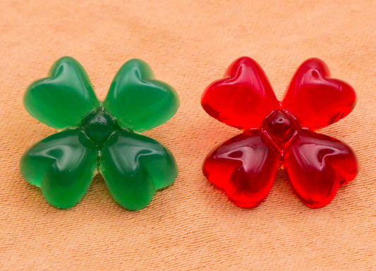 Four Leaf Clover Shamrock Green Red Glass Button Various 15mm