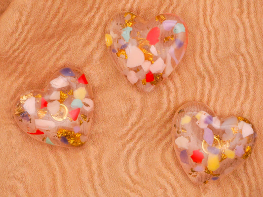 Heart Confetti Flecks Resin Plastic Button 19x20mm