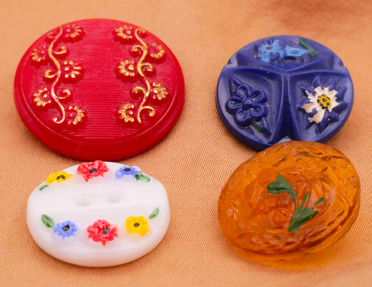 Flower Hand-Painted Vintage Glass Button Various 18-23mm