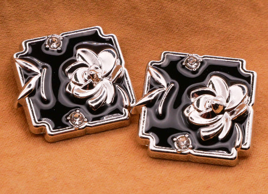 Rose Flower Butterfly Black Enamel Silver Metal Button 20x22mm