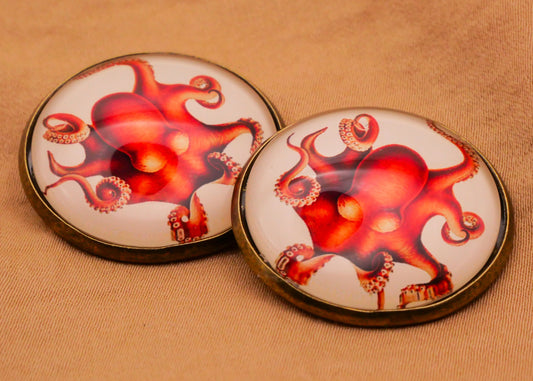 Octopus Vintage Illustration Glass Dome Bronze Metal Button 28mm