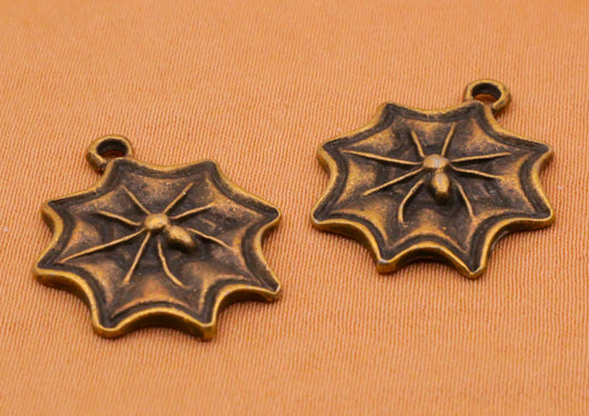 Spider Web Bronze Metal Pair of Charms Embellishments 17x21mm