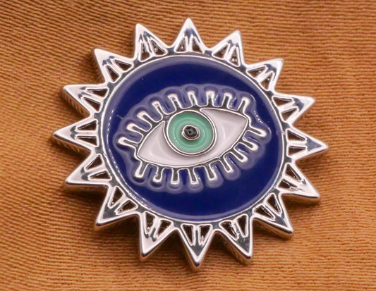Eye Sun Blue Enamel Silver Metal Button 19mm