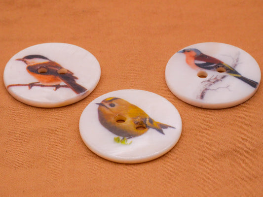 Bird Fall Color Birds Mother of Pearl Set of Three Buttons 25mm