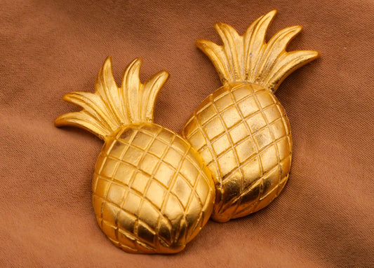 Pineapple Fruit Gold Metal Vintage Large Button 21x39mm