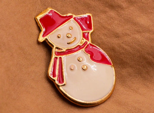 Snowman Hat Broom Red Ivory Enamel Vintage Large Button 28x39mm