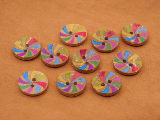 Rainbow Stripe Swirl Coconut Shell Set of Ten Buttons 13mm