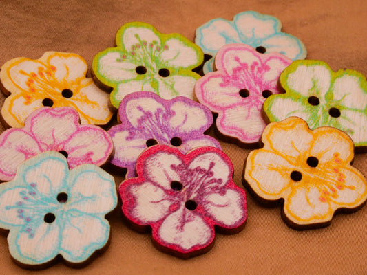 Hibiscus Colorful Wood Assorted Set of Ten Buttons 25mm