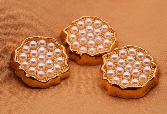 Lotus Seed Pod Pearl Gold Metal Button 20mm