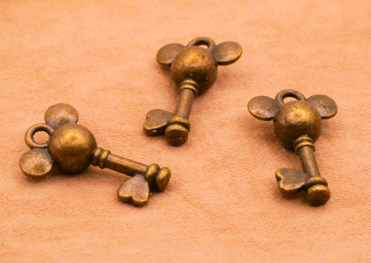 Mickey Mouse Ears Heart Key Bronze Metal Set of Three Charms 11x18mm
