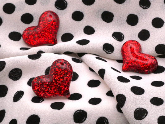 Red Glitter Heart Set of Three Resin Buttons 17x21mm