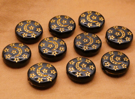 Moon Star Celestial Black Gold Plastic Set of Ten Beads Embellishments 12mm