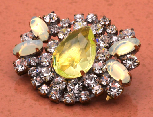 Uranium Teardrop Rhinestone Large Vintage Czech Button 33x44mm