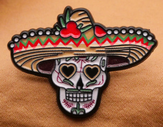 Sugar Skull Skeleton Hat Dios de Muertos Enamel Metal Large Button 26x36mm
