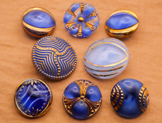 Blue Gold Moonglow Digdug Vintage Glass Button Various 18-23mm