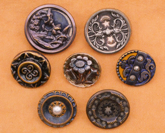 Blue Tinted Victorian Metal Button Various 14-18mm
