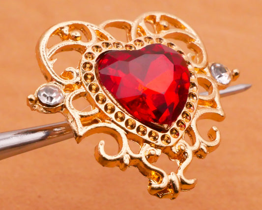 Heart Rhinestone Gold Filigree Metal Button 22x25mm