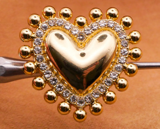 Heart Rhinestone Bead Shiny Gold Metal Button 20x22mm
