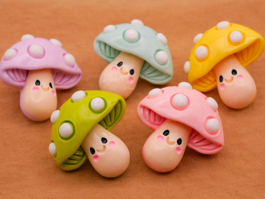 Mushroom Smiling Pastel Color Plastic Assorted Set of Four Buttons 25mm
