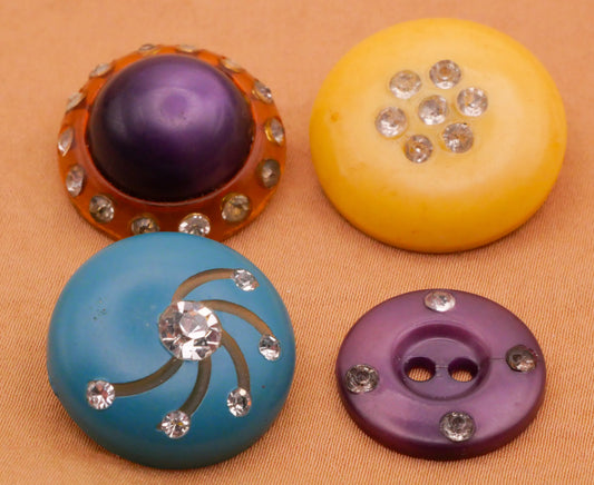 Colorful Rhinestone Vintage Early Plastic Button Various 18-24mm